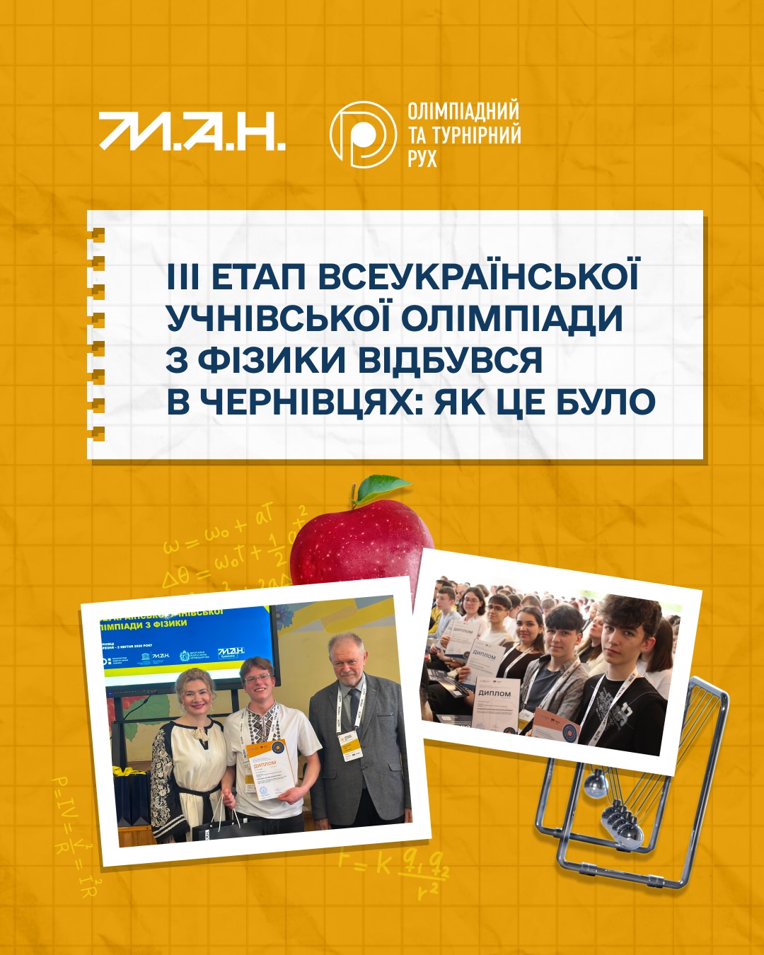 27 листопада Мала академія наук провела церемонію нагородження лауреатів стипендії Президента України — переможців Всеукраїнських учнівських олімпіад та Всеукраїнського конкурсу-захисту науково-дослідницьких робіт.